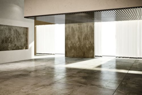 Dieser elastische Bodenbelag besticht durch seine detailgetreue Reproduktion von Metall und steht in einem spannungsreichen Dialog mit der zeitgenössischen Architektur.