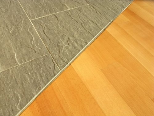 Stabparkett "Buche". Hier in Kombination mit Fliesen.